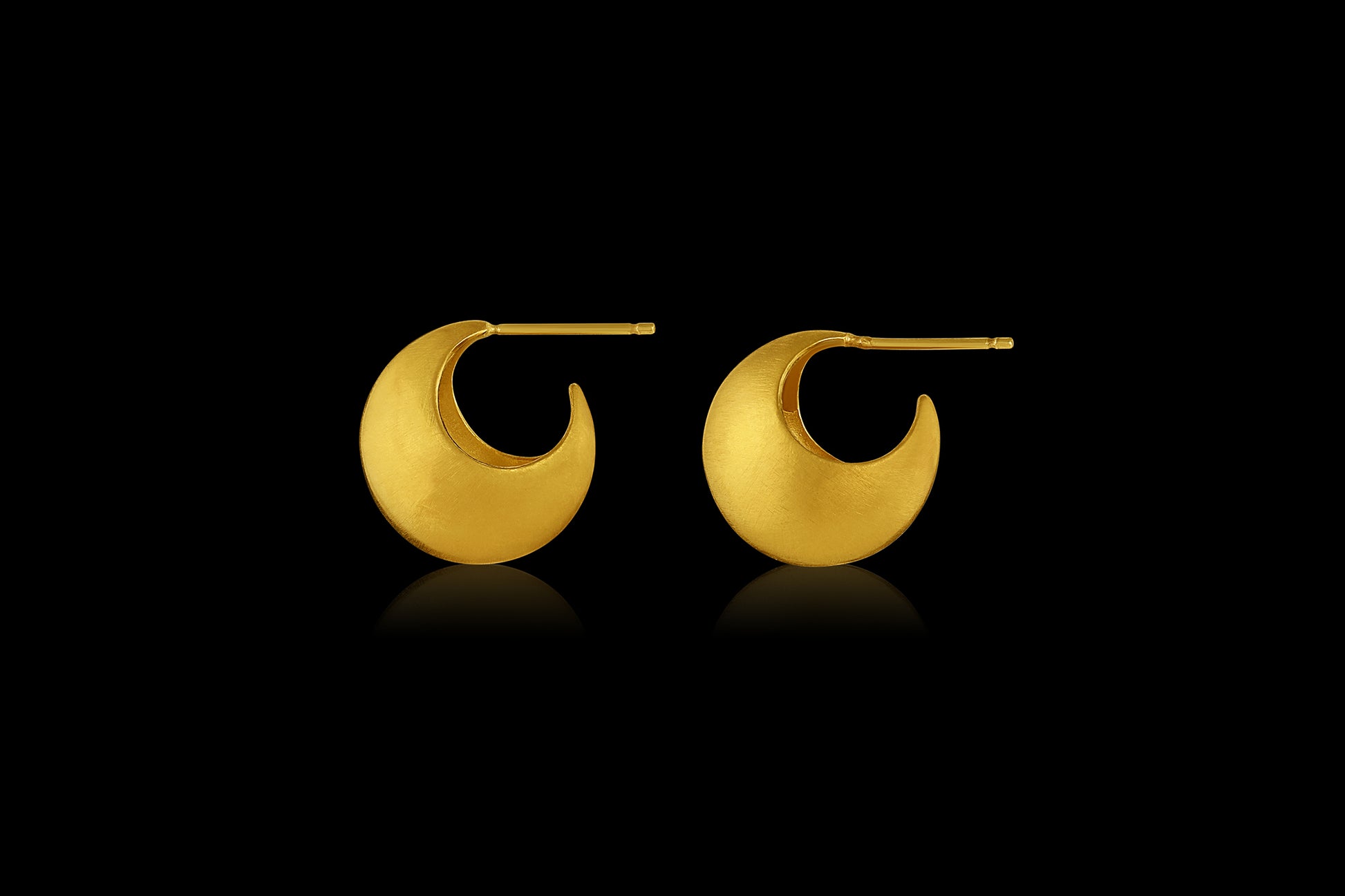 The Crescent Mini Hoop has a smooth velvet surface that hugs the ear. The voluminous shape is reminiscent of a crescent.