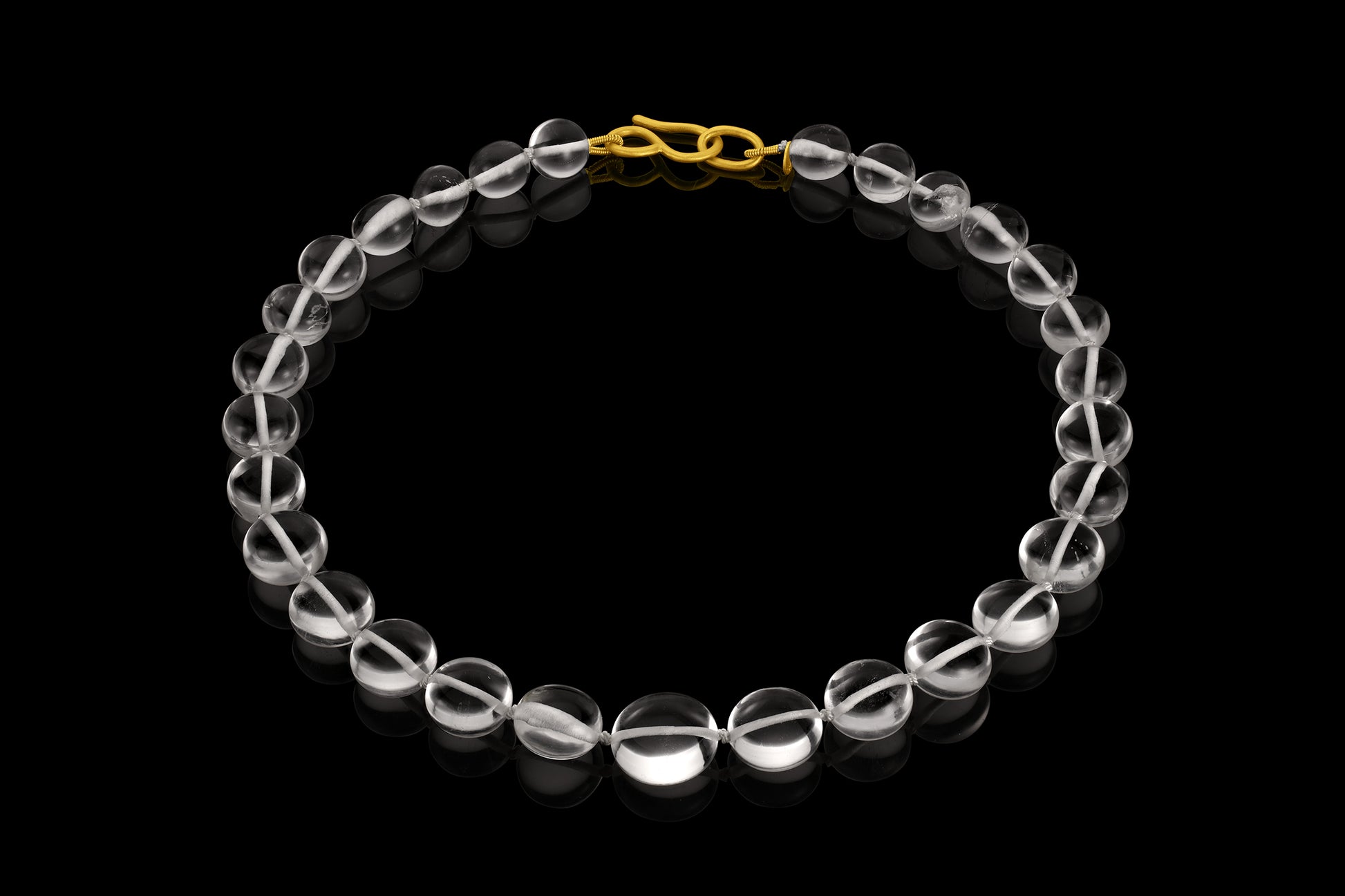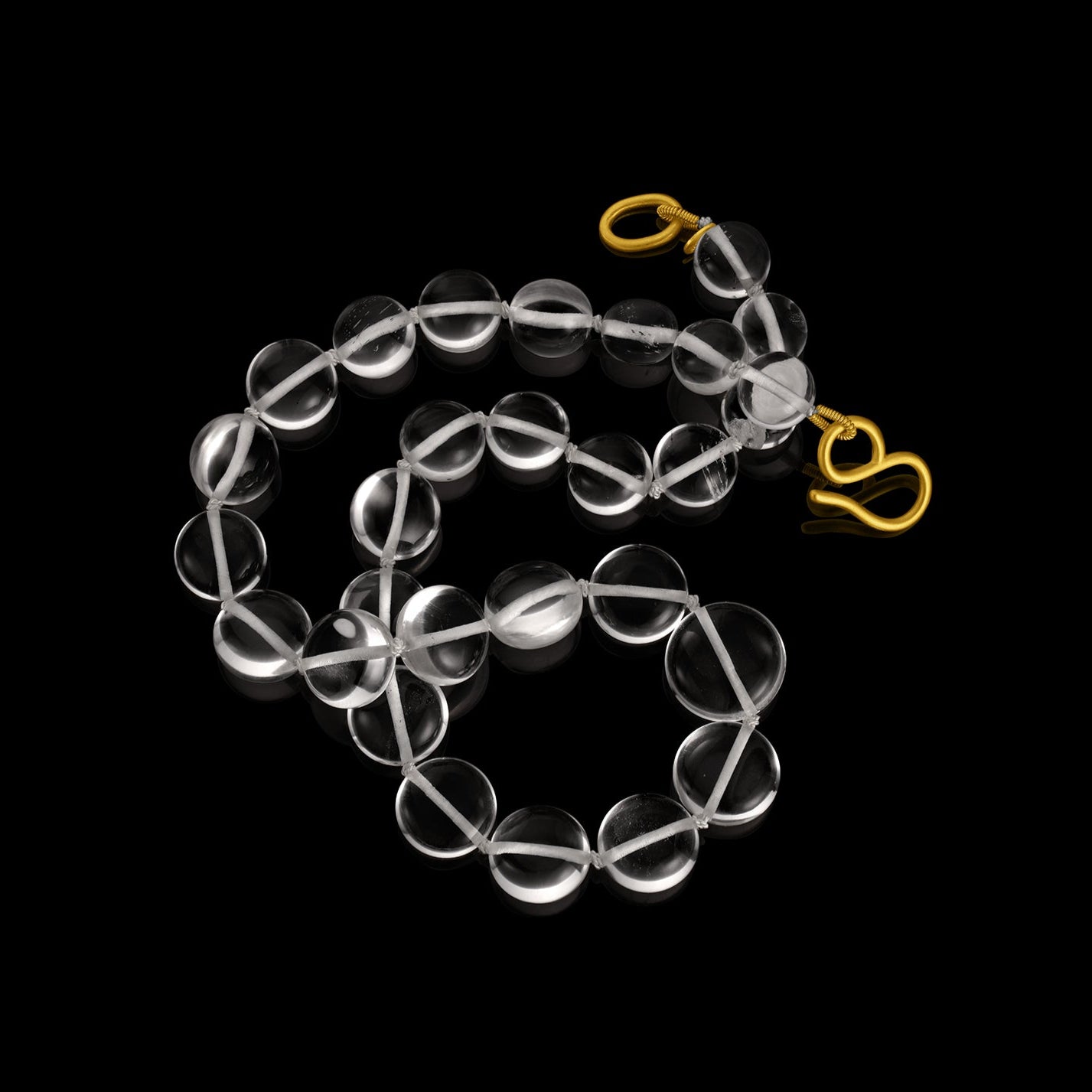 Composed of beautiful, optically clear rock crystal carved in Idar-Oberstein and finished with our signature shepherd's hook clasp, this necklace is refreshing and easy to wear alone or combined with other pieces. The play of light over the rock crystal creates an eye-catching shimmer. Pairs well with our Crystal Mini Cleo earrings.